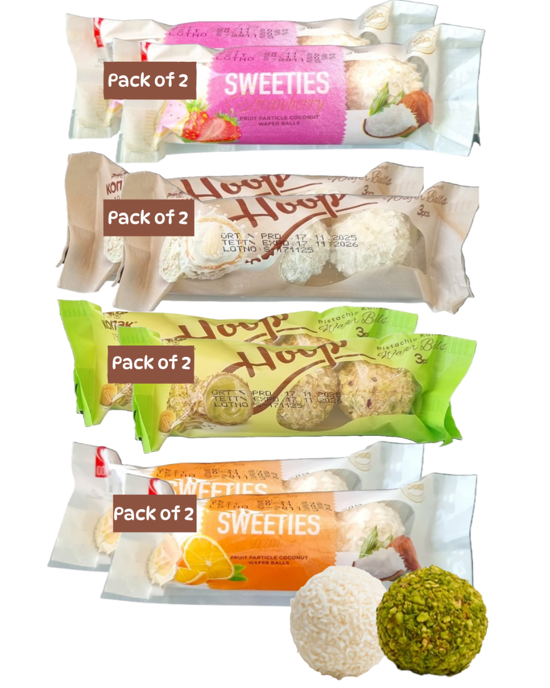 Coconut & Pistachio Wafer Balls Mix Package (Pistachio,Coconut,Strawberry,Orange)