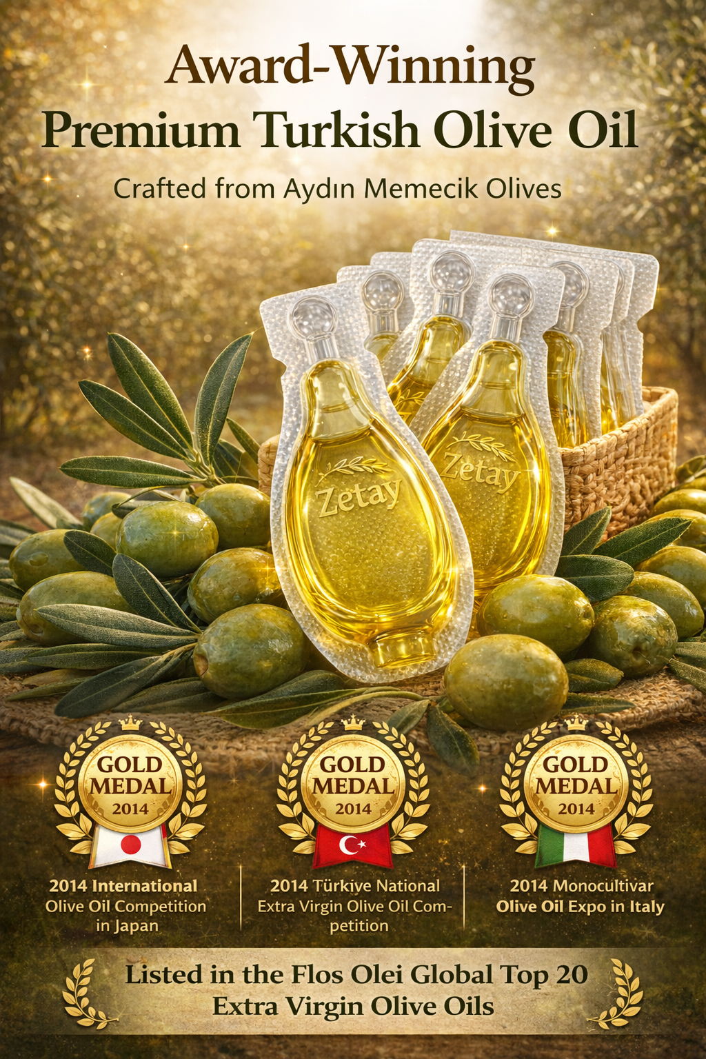 Zetay Premium Extra Virgin Olive Oil Sachets | Cold press |12 x 10 ml (Total 120 ml / 4.06 fl oz)